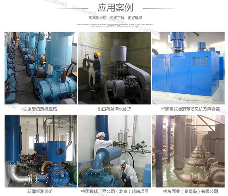 羅茨風機結構簡單,制造方便,廣泛應用于水產養殖增氧、污水處理曝氣、水泥輸送,更適用于低壓力場合的氣體輸送和加壓,也可用作真空泵。