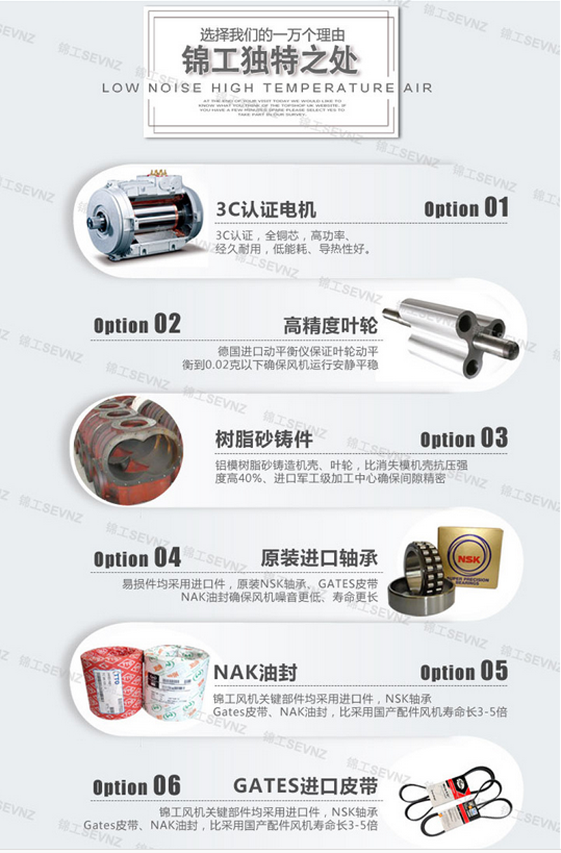1、采用了三葉轉子結構形式及合理的殼體內進出風口處的結構,所以風機振動小,噪聲低。