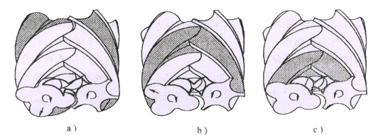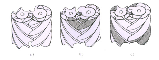 齒間容積與排氣口連通后,排氣過程開始。轉(zhuǎn)子轉(zhuǎn)動(dòng)過程中,齒間容積不斷減小,將壓縮后的氣體送至排氣管。此過程一直延續(xù)到該容積達(dá)到最小值為止。