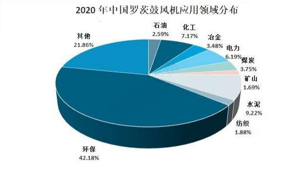 羅茨風(fēng)機(jī)下游需求廣泛,包括環(huán)保、化工、水泥、電力、冶金、煤炭、等行業(yè),其中環(huán)保已成為最大的下游應(yīng)用領(lǐng)域,2021年占比達(dá)46.18%;其次水泥、化工、電力行業(yè)分布占比7.22%、6.17%、1.19%。