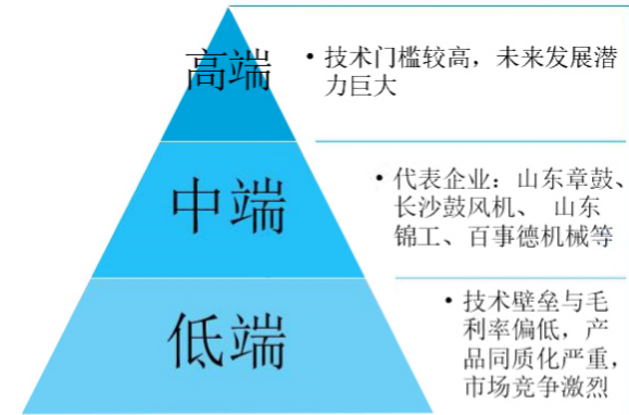我國(guó)羅茨鼓風(fēng)機(jī)行業(yè)競(jìng)爭(zhēng)較為充分,市場(chǎng)化程度較高。目前已經(jīng)形成了高、中、低三個(gè)層次產(chǎn)品市場(chǎng)。低端產(chǎn)品市場(chǎng)技術(shù)壁壘與毛利率偏低,市場(chǎng)競(jìng)爭(zhēng)激烈。中端產(chǎn)品市場(chǎng)主要企業(yè)有長(zhǎng)沙鼓風(fēng)機(jī)、山東章鼓、百事德機(jī)械、錦工鼓風(fēng)機(jī)等。高端產(chǎn)品市場(chǎng)技術(shù)門檻較大,未來發(fā)展?jié)摿薮螅彩窃S多企業(yè)未來的發(fā)展方向。